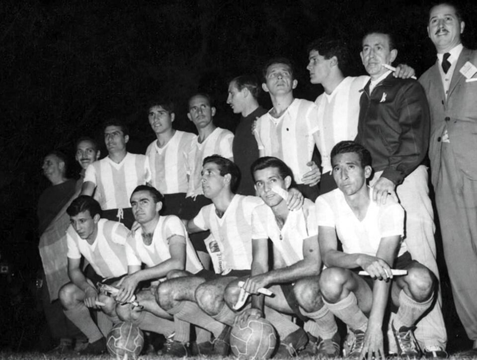 H εντεκάδα της Εθνικής Αργεντινής που απέσπασε το 1-1 από τη Βραζιλία στις 4 Απριλίου 1959 και κατέκτησε το Κόπα Αμέρικα. Όρθιοι από αριστερά διακρίνονται οι ποδοσφαιριστές Λομπάρδο, Γκρίφα, Μουρίνιο, Νέγκρι, Καπ και Μουρούα. Στην κάτω σειρά βλέπουμε τους Ναρδιέλο, Πισούτι, Σόσα, Κασά, Μπελέν (πηγή: El Grafico).