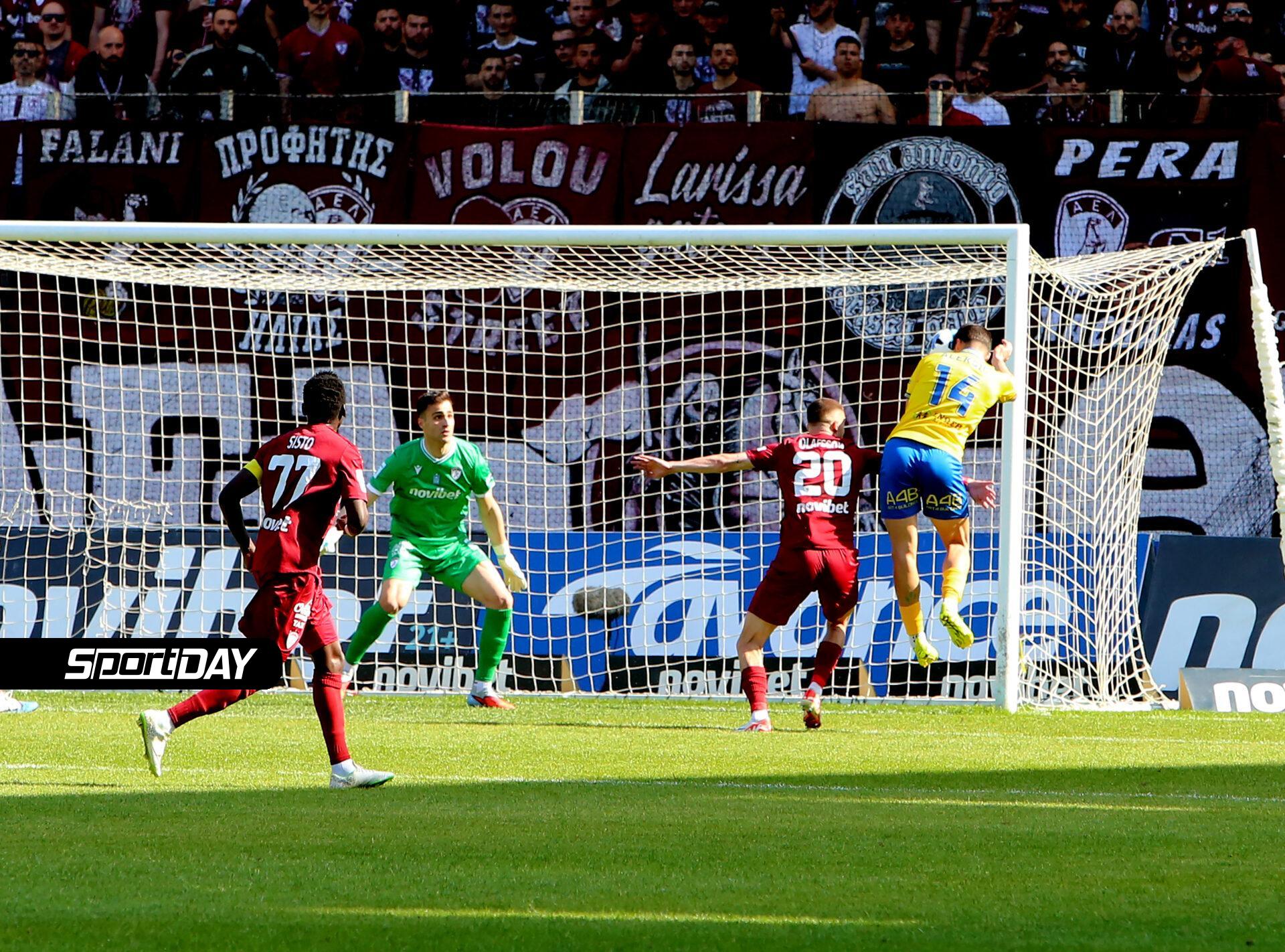 Ο Άλεξιτς στο 34′ άνοιξε το σκορ στη Λάρισα. Ο Μπουχαλάκης έκανε σέντρα ακριβείας στο δεύτερο δοκάρι και ο Σέρβος νίκησε τον αντίπαλό με δυνατή κεφαλιά. Ο Τούπτα στο 49′ έχασε μεγάλη ευκαιρία για τους Θεσσαλούς, όμως ο Κουτσερένκο και το δοκάρι κράτησαν τον Παναιτωλικό μπροστά στο σκορ.