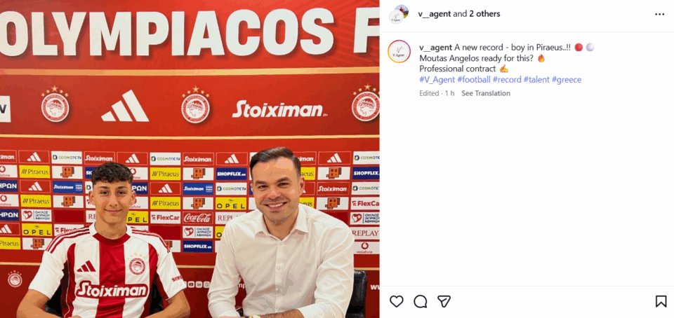 Παιδί του 2011 και επαγγελματίας! Ο Αγγελος Μούτας υπέγραψε το νέο του συμβόλαιο με τον Ολυμπιακό και επιβραβεύτηκε για την πρόσφατη εικόνα του, που παρά την ηλικία του τον έχει οδηγήσει στην Κ17.