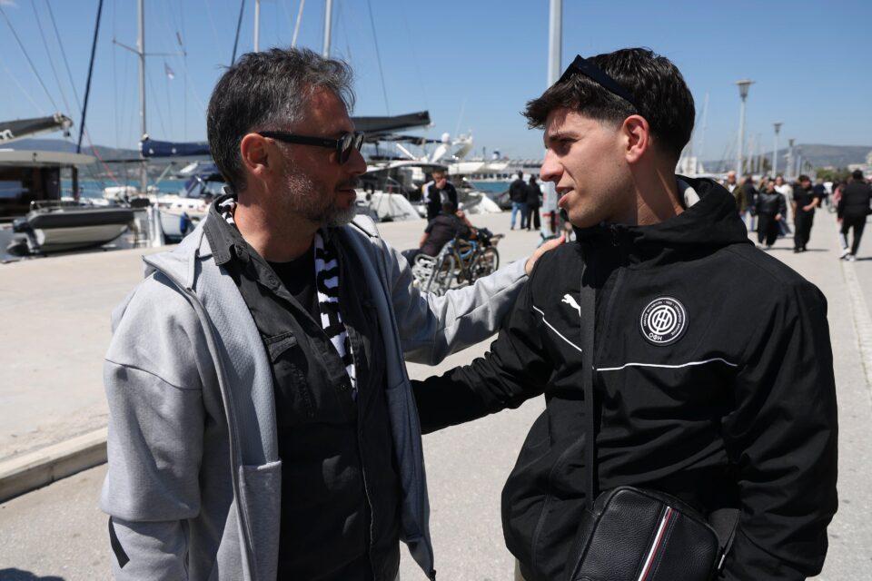 Οι οπαδοί των δύο ομάδων, μάλιστα, χαίρονται μαζί την περίσταση, τραγουδούν παρέα, τρώνε, πίνουν και φωτογραφίζονται.