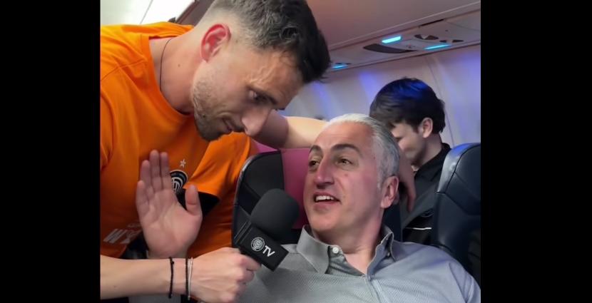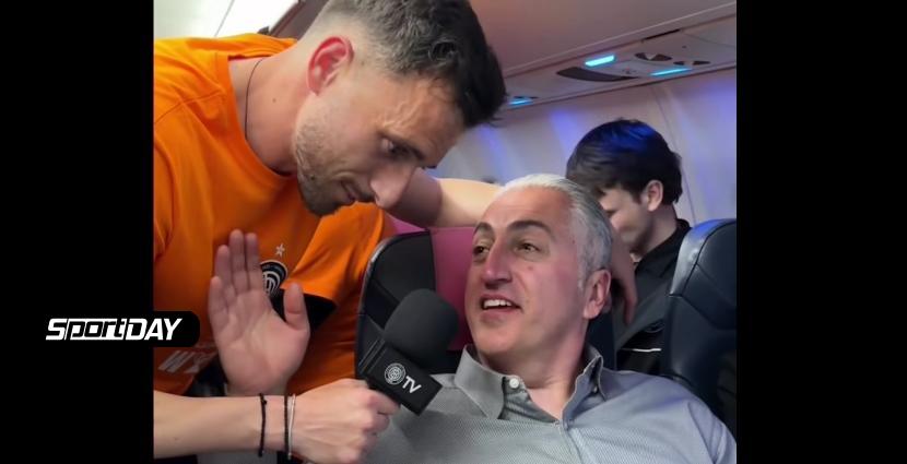 Απολαυστικό video: Η πτήση της επιστροφής, οι πανηγυρισμοί στο αεροπλάνο και ο... ρεπόρτερ Καραχάλιος