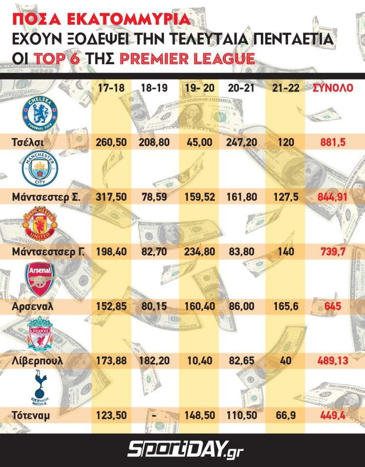 Τα ποσά που έχει ξοδέψει το big – 6 της Premier League την τελευταία πενταετία το… μυστικό του «αρχιτέκτονα» της Λίβερπουλ και το… αντιπαράδειγμα των ημερών Σόλσκιερ στη Μάντσεστερ Γιουνάιτεντ