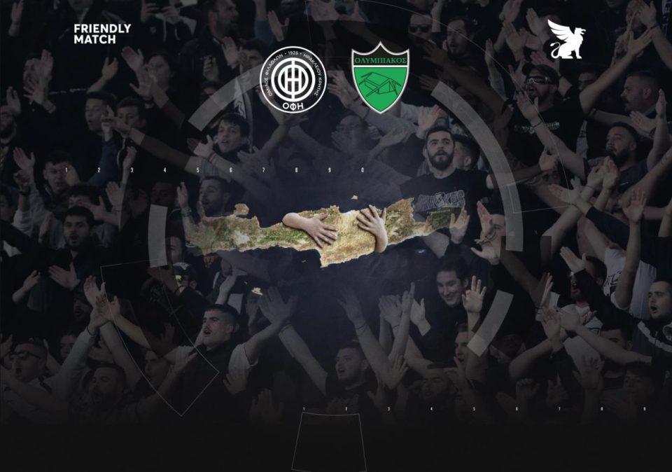 Η ΠΑΕ ΟΦΗ συνεχίζει την ουσιαστική στήριξη προς τις σεισμόπληκτες περιοχές του νομού μας και διοργανώνει διεθνή φιλικό αγώνα φιλανθρωπικού χαρακτήρα, με αντίπαλο τον Ολυμπιακό Λευκωσίας, την Παρασκευή 12 Νοεμβρίου 2021, στις 18:30 στο Παγκρήτιο στάδιο.
