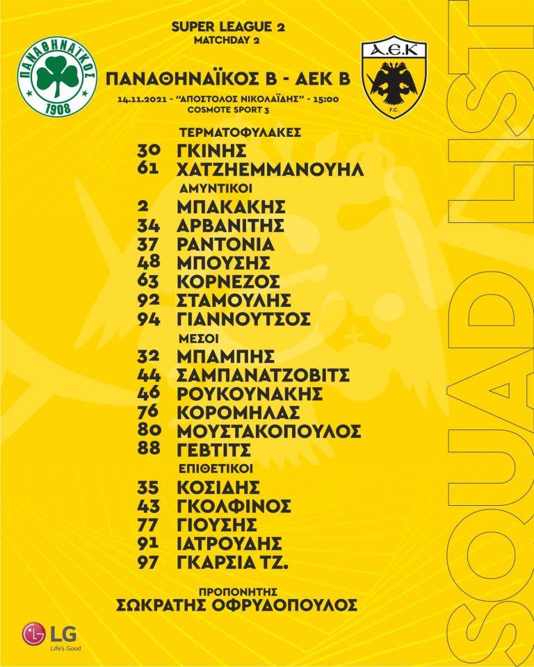 Με τους Ντάρκο Γέβτιτς και Μιχάλη Μπακάκη αλλά και αρκετές απουσίες θα παραταχθεί η ΑΕΚ Β’ στο αυριανό ντέρμπι με τον Παναθηναϊκό.