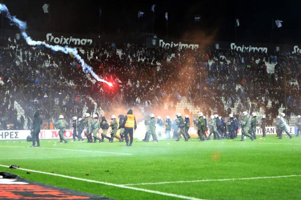 Μια μερίδα οπαδών του ΠΑΟΚ βρίσκεται, σε απόσταση κάποιων μέτρων, έξω από την είσοδο των αποδυτηρίων. Η αστυνομία αλλά και άνδρερς σεκιούριτι περιφρουρούν τον χώρο. Δεν υπάρχει ένταση και γίνεται προσπάθεια προκειμένου, οι οπαδοί να απομακρυνθούν για να γίνει και η αποχώρηση των δυο ομάδων. Ήδη ακούγονται αποδοκιμασίες με αποδέκτες τους ποδοσφαιριστές του ΠΑΟΚ…