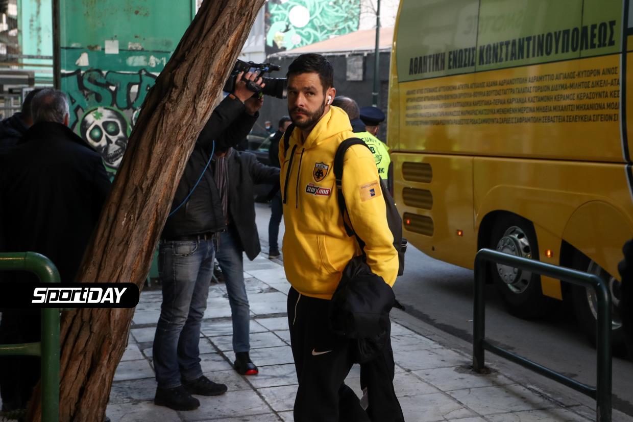 Η ΑΕΚ έφτασε στο γήπεδο της Λεωφόρου όπου αντιμετωπίζει σε λίγη ώρα τον Παναθηναϊκό στο μεγάλο ντέρμπι της 25ης αγωνιστικής της Super League.