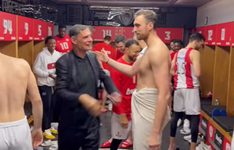 ΜπάσκετΟλυμπιακός Ολυμπιακός: Συγχαρητήρια στον Μπαρτζώκα για το ρεκόρ με... μπουγέλο από τους παίκτες