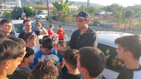 ΠοδόσφαιροΟλυμπιακός Στα Χανιά ο Κωνσταντίνος Τζολάκης: Τεράστια αγκαλιά από τα παιδιά στον τερματοφύλακα του Ολυμπιακού