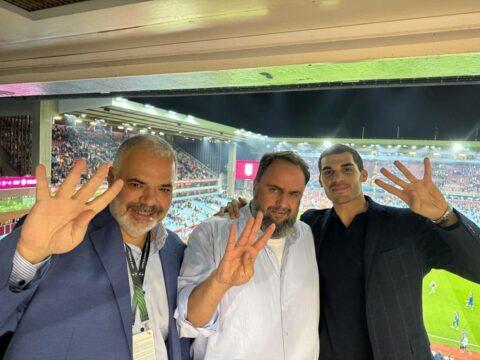 ΠοδόσφαιροΟλυμπιακός Ολυμπιακός: Η πανηγυρική φωτογραφία των Βαγγέλη και Μιλτιάδη Μαρινάκη για την πρόκριση στους "4"