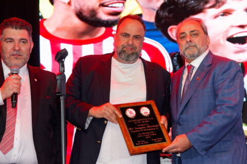 ΠοδόσφαιροΟλυμπιακός Βαγγέλης Μαρινάκης: Τιμήθηκε στην εκδήλωση για τα 100 χρόνια του Ολυμπιακού στην Νέα Υόρκη