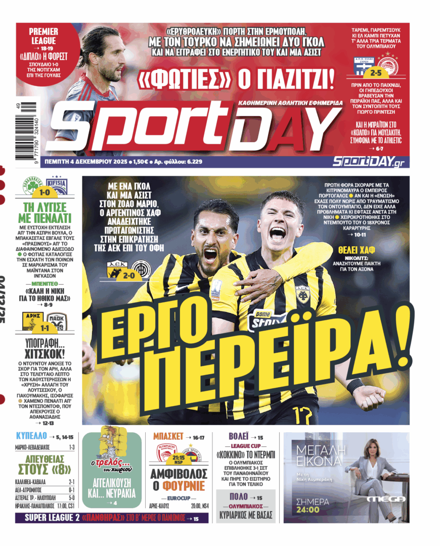 To πρωτοσέλιδο της SPORTDAY Η κορυφαία αθλητική εφημερίδα κάθε μέρα στα περίπτερα. Διαβάστε στην SportDay: Εργο Περέιρα «Φωτιές» ο Γιαζιντζί Υπογραφή… Χιτσκοκ ΑΡΧΕΙΟ: ΙΑΝΟΥΑΡΙΟΣΦΕΒΡΟΥΑΡΙΟΣΜΑΡΤΙΟΣΑΠΡΙΛΙΟΣΜΑΙΟΣΙΟΥΝΙΟΣΙΟΥΛΙΟΣΑΥΓΟΥΣΤΟΣΣΕΠΤΕΜΒΡΙΟΣΟΚΤΩΒΡΙΟΣΝΟΕΜΒΕΡΙΟΣΔΕΚΕΜΒΡΙΟΣ 2025202420232022202120202019201820172016201520142013201220112010
