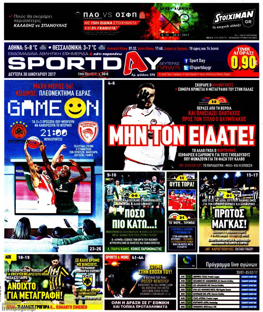 Πρωτοσέλιδο SPORTDAY - Δευτέρα 30 Ιανουαρίου 2017 Το πρωτοσελίδo της ημέρας από το αρχείο της SportDay. ΑΡΧΕΙΟ: ΙΑΝΟΥΑΡΙΟΣΦΕΒΡΟΥΑΡΙΟΣΜΑΡΤΙΟΣΑΠΡΙΛΙΟΣΜΑΙΟΣΙΟΥΝΙΟΣΙΟΥΛΙΟΣΑΥΓΟΥΣΤΟΣΣΕΠΤΕΜΒΡΙΟΣΟΚΤΩΒΡΙΟΣΝΟΕΜΒΕΡΙΟΣΔΕΚΕΜΒΡΙΟΣ 2025202420232022202120202019201820172016201520142013201220112010
