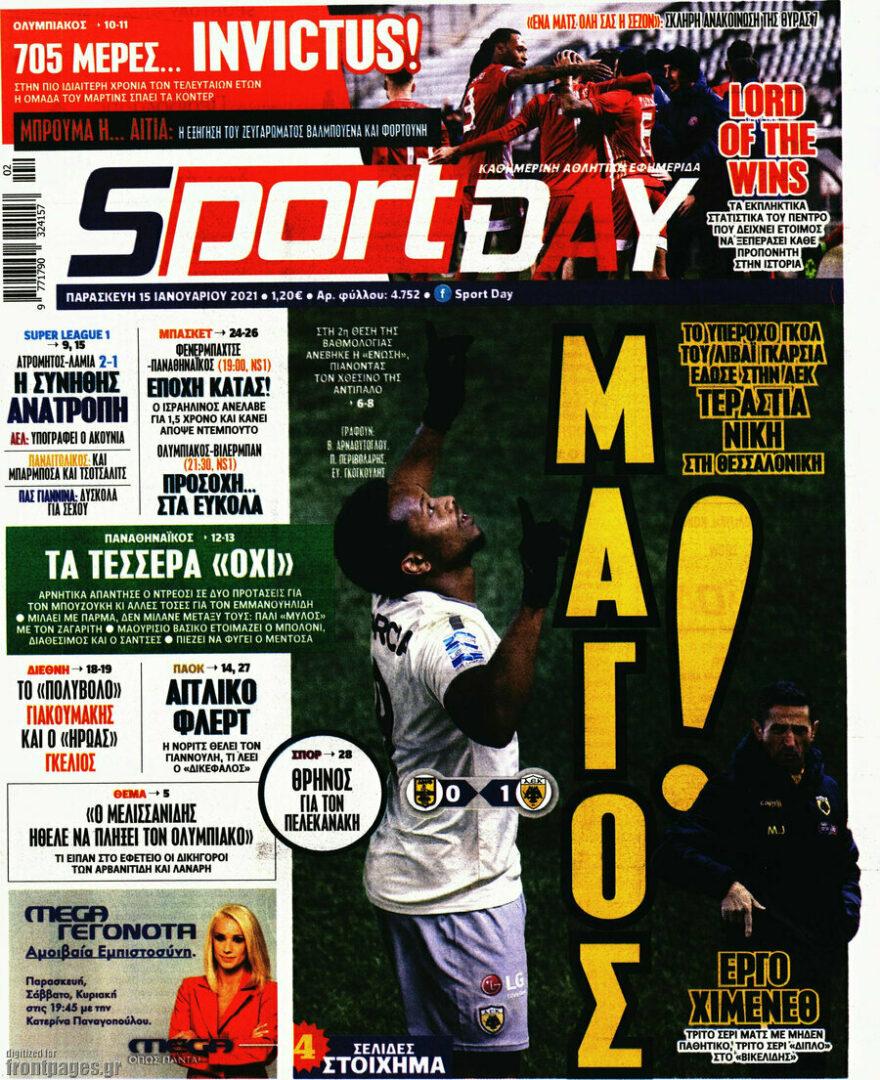 Πρωτοσέλιδο SPORTDAY - Παρασκευή 15 Ιανουαρίου 2021 Το πρωτοσελίδo της ημέρας από το αρχείο της SportDay. ΑΡΧΕΙΟ: ΙΑΝΟΥΑΡΙΟΣΦΕΒΡΟΥΑΡΙΟΣΜΑΡΤΙΟΣΑΠΡΙΛΙΟΣΜΑΙΟΣΙΟΥΝΙΟΣΙΟΥΛΙΟΣΑΥΓΟΥΣΤΟΣΣΕΠΤΕΜΒΡΙΟΣΟΚΤΩΒΡΙΟΣΝΟΕΜΒΕΡΙΟΣΔΕΚΕΜΒΡΙΟΣ 20262025202420232022202120202019201820172016201520142013201220112010