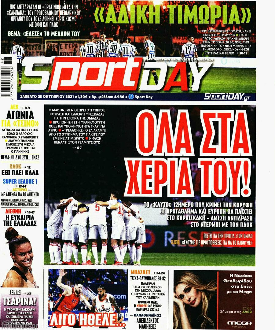 Πρωτοσέλιδο SPORTDAY - Σάββατο 23 Οκτωβρίου 2021 Το πρωτοσελίδo της ημέρας από το αρχείο της SportDay. ΑΡΧΕΙΟ: ΙΑΝΟΥΑΡΙΟΣΦΕΒΡΟΥΑΡΙΟΣΜΑΡΤΙΟΣΑΠΡΙΛΙΟΣΜΑΙΟΣΙΟΥΝΙΟΣΙΟΥΛΙΟΣΑΥΓΟΥΣΤΟΣΣΕΠΤΕΜΒΡΙΟΣΟΚΤΩΒΡΙΟΣΝΟΕΜΒΕΡΙΟΣΔΕΚΕΜΒΡΙΟΣ 2025202420232022202120202019201820172016201520142013201220112010