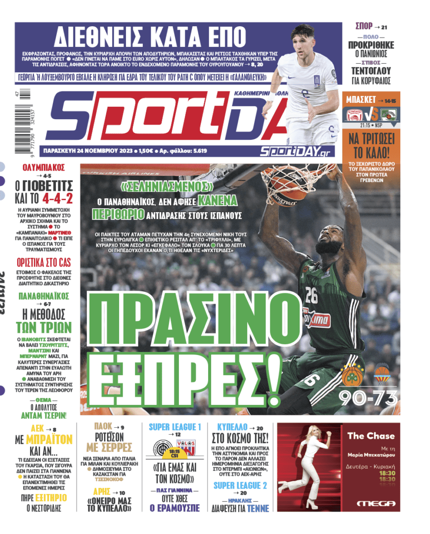 Πρωτοσέλιδο SPORTDAY - Παρασκευή 24 Νοεμβρίου 2023