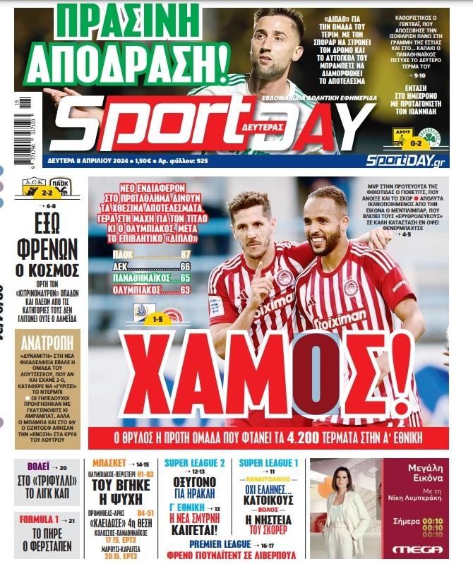 Πρωτοσέλιδο SPORTDAY - Δευτέρα 8 Απριλίου 2024 Το πρωτοσελίδo της ημέρας από το αρχείο της SportDay. Διαβάστε στην SportDay: Χαμός! Πράσινη απόδραση! Έξω φρενών ο κόσμος Άρθρα της SportDay στο Sportday.gr: Γιώργος Χελάκης: Ο ΠΑΟΚ «τούμπαρε» την ΑΕΚ που έχει σαφές έλλειμα φρεσκάδας…Αντώνης Καρπετόπουλος: Η πίστη του Λουτσέσκου ΑΡΧΕΙΟ: ΙΑΝΟΥΑΡΙΟΣΦΕΒΡΟΥΑΡΙΟΣΜΑΡΤΙΟΣΑΠΡΙΛΙΟΣΜΑΙΟΣΙΟΥΝΙΟΣΙΟΥΛΙΟΣΑΥΓΟΥΣΤΟΣΣΕΠΤΕΜΒΡΙΟΣΟΚΤΩΒΡΙΟΣΝΟΕΜΒΕΡΙΟΣΔΕΚΕΜΒΡΙΟΣ 2025202420232022202120202019201820172016201520142013201220112010