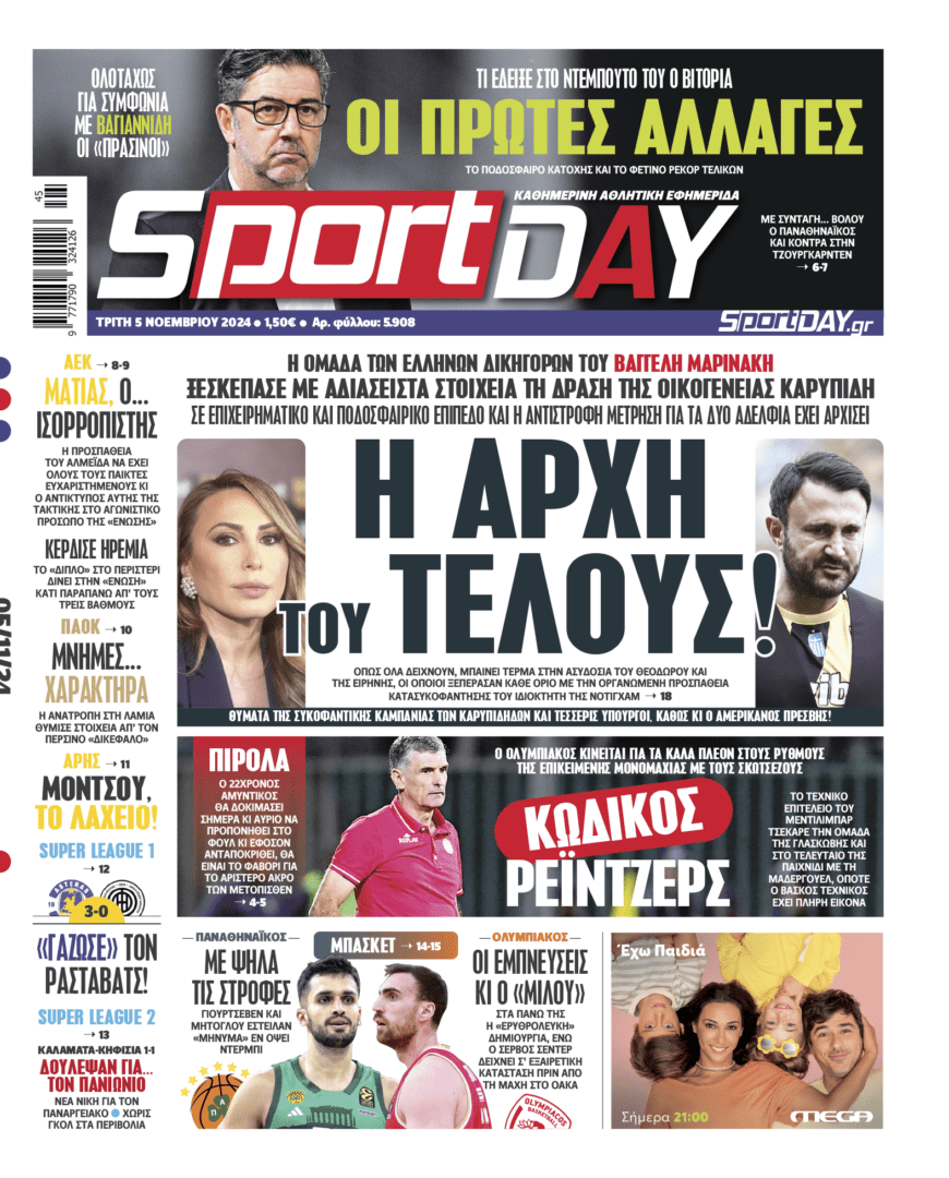 Πρωτοσέλιδο SPORTDAY - Τρίτη 5 Νοεμβρίου 2024