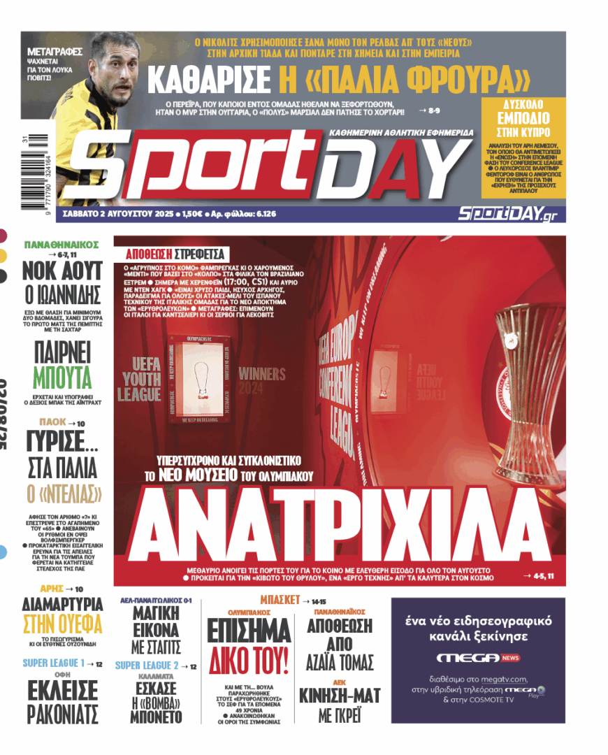 Πρωτοσέλιδο SPORTDAY - Σάββατο 2 Αυγούστου 2025 Το πρωτοσελίδo της ημέρας από το αρχείο της SportDay. Διαβάστε στην SportDay: ΑΝΑΤΡΙΧΙΛΑ! ΠΑΙΡΝΕΙ ΜΠΟΥΤΑ ΚΑΘΑΡΙΣΕ Η «ΠΑΛΙΑ ΦΡΟΥΡΑ» ΓΥΡΙΣΕ… ΣΤΑ ΠΑΛΙΑ Ο «ΝΤΕΛΙΑΣ» ΑΡΧΕΙΟ: ΙΑΝΟΥΑΡΙΟΣΦΕΒΡΟΥΑΡΙΟΣΜΑΡΤΙΟΣΑΠΡΙΛΙΟΣΜΑΙΟΣΙΟΥΝΙΟΣΙΟΥΛΙΟΣΑΥΓΟΥΣΤΟΣΣΕΠΤΕΜΒΡΙΟΣΟΚΤΩΒΡΙΟΣΝΟΕΜΒΕΡΙΟΣΔΕΚΕΜΒΡΙΟΣ 2025202420232022202120202019201820172016201520142013201220112010