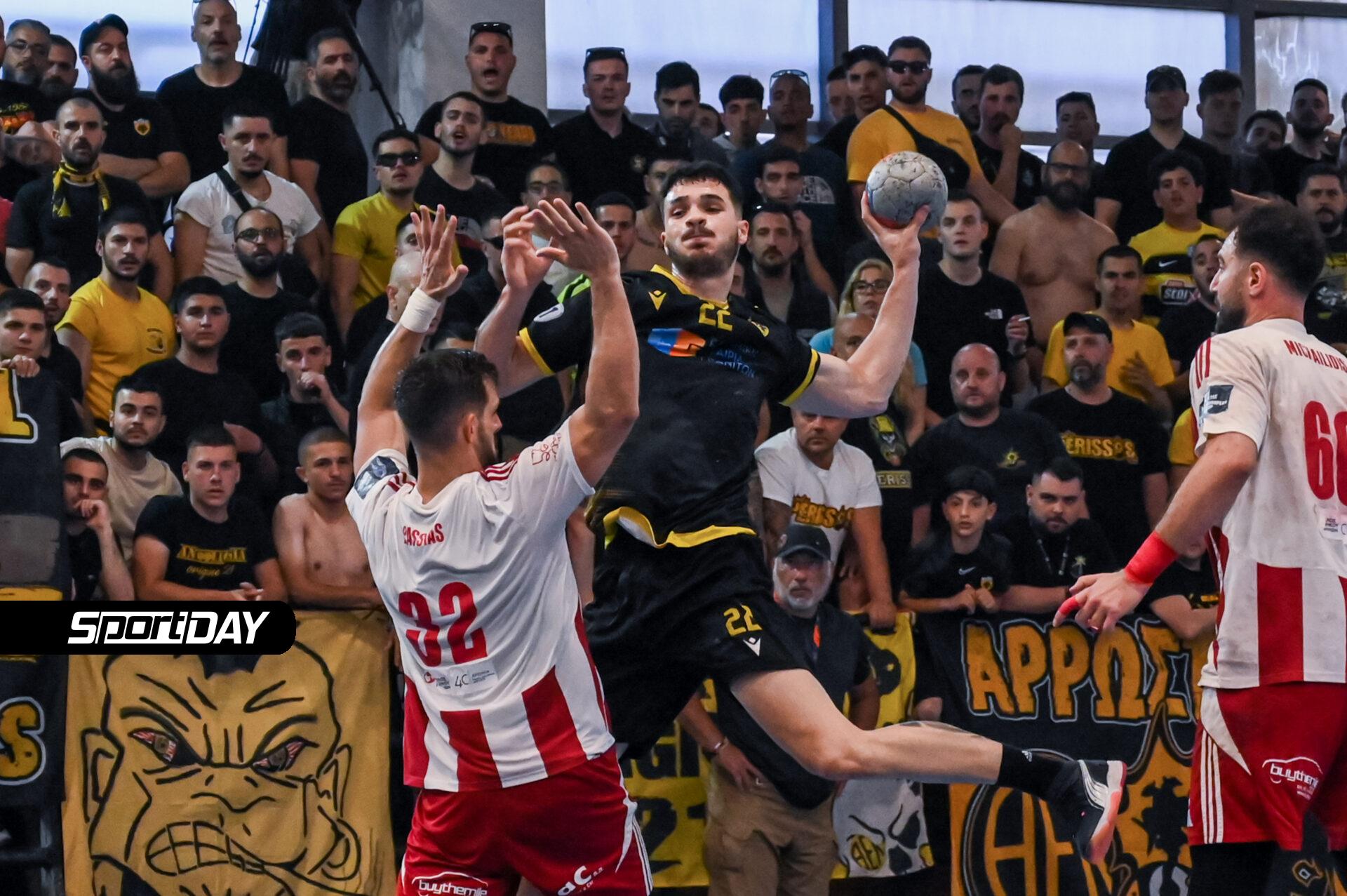 από τα οποία προκύπτει ότι, αμέσως μετά τη λήξη του αγώνα χάντμπολ ΑΕΚ – ΟΛΥΜΠΙΑΚΟΣ ΣΦΠ/ΟΜΙΛΟΣ ΞΥΝΗ, στις 02/06/2025 στο ΟΑΚΑ «Γ.ΚΑΣΣΙΜΑΤΗΣ», για το Πρωτάθλημα Handball Premier Ανδρών, της Ο.Χ.Ε., αγωνιστικής περιόδου 2024-2025, και πιο συγκεκριμένα κατά την διάρκεια αποχώρησης της φιλοξενούμενης ομάδας του Ολυμπιακού προς τα αποδυτήρια, φίλαθλοι της γηπεδούχου ομάδας ΑΕΚ εκσφενδόνισαν από την κερκίδα εντός του αγωνιστικού χώρου, τέσσερα (4) πλαστικά μπουκάλια γεμάτα με νερό προς τους αποχωρούντες αθλητές και συνοδούς της φιλοξενούμενης ομάδας,