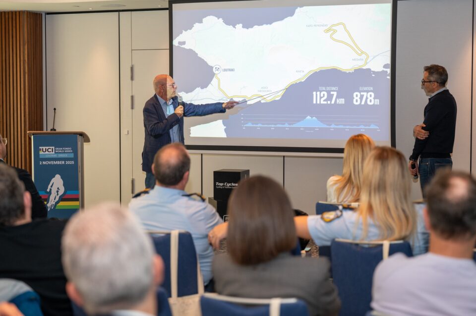 Συνέντευξη τύπου για τον διεθνή ποδηλατικό αγώνα UCI Gran Fondo Loutraki 2025 πραγματοποιήθηκε την Τρίτη 7 Οκτωβρίου, με τη συμμετοχή εκπροσώπων της τοπικής αυτοδιοίκησης, των χορηγών και εκπροσώπων του Τύπου.