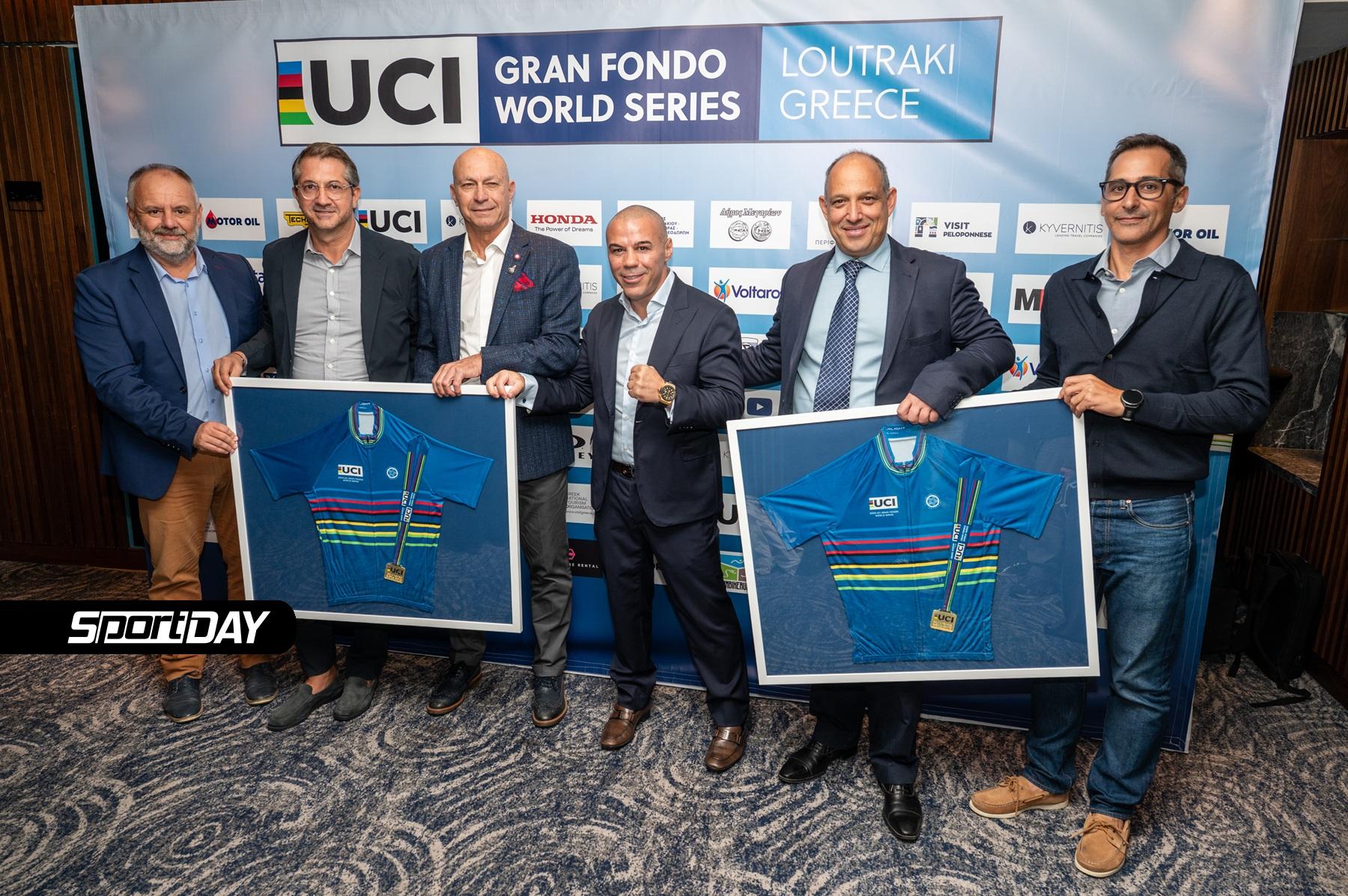 Η συνέντευξη τύπου ολοκληρώθηκε με την παρουσίαση της φανέλας και του μεταλλίου του UCI Gran Fondo Loutraki 2025, που συμβολίζουν την ταυτότητα και την αξία αυτής της μεγάλης ποδηλατικής γιορτής. Οι Δήμαρχοι Λουτρακίου-Περαχώρας-Αγίων Θεοδώρων και Μεγαρέων, τιμήθηκαν με την επίσημη φανέλα της UCI και το μετάλλιο του νικητή για την συνεισφορά τους στη διοργάνωση.