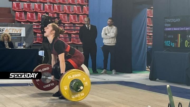 Η 17χρονη Στρατουδάκη κατέκτησε έξι χρυσά μετάλλια, από τρία στις Γυναίκες και στις Νέες Γυναίκες καταρρίπτοντας τα προηγούμενα δικά της πανελλήνια ρεκόρ. Σήκωσε 83 κιλά στο αρασέ, 102 στο ζετέ και 185 στο σύνολο, που είναι ρεκόρ Κορασίδων, Νεανίδων, Νέων Γυναικών και Γυναικών.