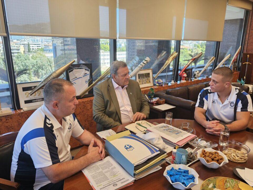 Ο κ. Κούβελος κάλεσε τον Πρωταθλητή Κόσμου, που συνόδευαν ο Γενικός Γραμματέας της Ελληνικής Ομοσπονδίας Πάλης, Ολυμπιονίκης και μέλος της ΕΟΕ Κώστας Θάνος και ο Αναπληρωτής Πρόεδρος Δημήτρης Τραμπάκουλας, προκειμένου να τον συγχαρεί για την σπουδαία του επιτυχία στο Παγκόσμιο Πρωτάθλημα του Ζάγκρεμπ.