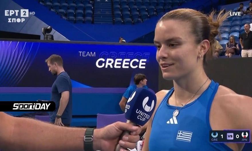 Η Μαρία Σάκκαρη νίκησε την Οσάκα με 2-0 σετ στην πρεμιέρα της στο United Cup κάνοντας το 1-0 για την Ελλάδα κόντρα στην Ιαπωνία. Μετά το τέλος του αγώνα μίλησε στην κάμερα της ΕΡΤ για τον αρραβώνα της με τον Κωνσταντίνο Μητσοτάκη, τον γιο του Πρωθυπουργού.