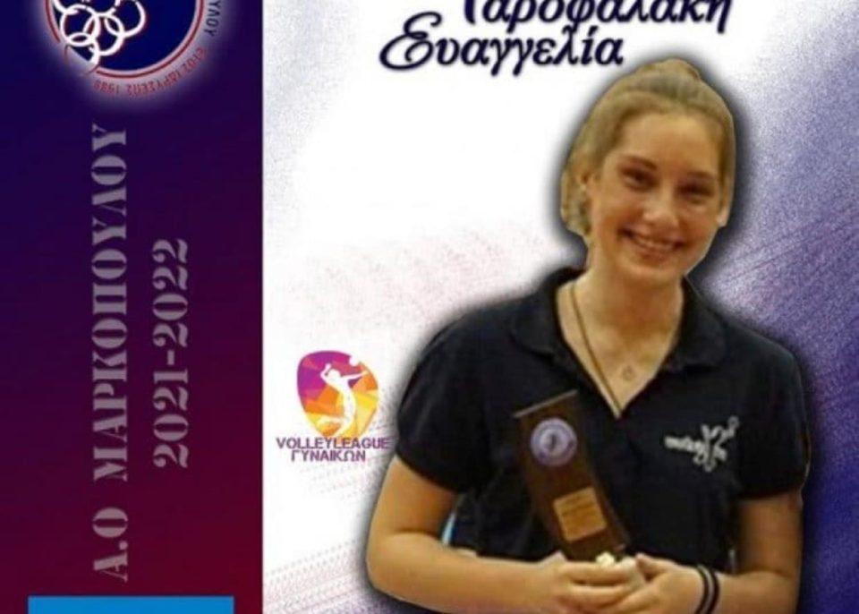 Τη 18άχρονη πασαδόρο Ευαγγελία Γαροφαλάκη ενέταξε στο δυναμικό του το Μαρκόπουλο. Είναι διεθνής με τις ομάδες παγκορασίδων (U15), κορασίδων (U17) και νεανίδων (U19), έχει κατακτήσει ένα πανελλήνιο πρωτάθλημα κορασίδων (2019) και η διοίκηση του σωματείου ανακοίνωσε την απόκτησή της για την αγωνιστική περίοδο 2021-2022.