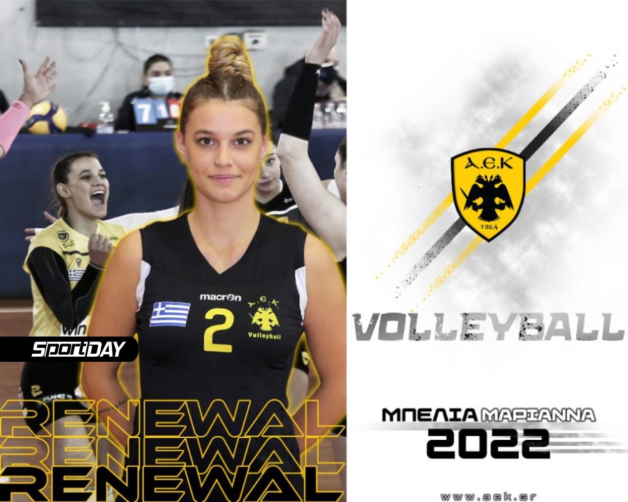 Η Μαριάννα Μπελιά, που αγωνίζεται ως λίμπερο, συνεχίζει τη μακρά ιστορία της στον σύλλογο, καθώς προέρχεται από τις Ακαδημίες και θα φοράει τη φανέλα της ΑΕΚ για 14ο χρόνο.
