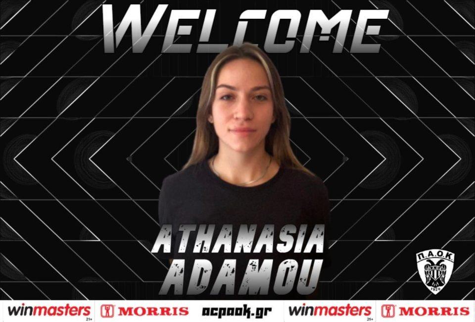 Άλλη μια μεταγραφική κίνηση για την ομάδα βόλεϊ γυναικών του ΠΑΟΚ, που γνωστοποίησε την έναρξη συνεργασίας με την Αθανασία Αδάμου. Γεννημένη το 2005, η Αθανασία Αδάμου αγωνίζεται ως λίμπερο και έχει ύψος 160cm. Η Αθανασία Αδάμου είναι διεθνής με τις ηλικιακές κατηγορίες της Εθνικής Ελλάδος.