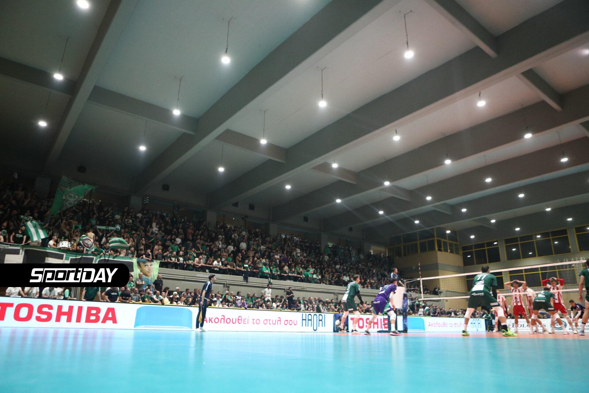 Ο Παναθηναϊκός πανηγύρισε με σκούπα στο κλειστό του Μετς την κατάκτηση του πρωταθλήματος στην Volley League επί του Ολυμπιακού.