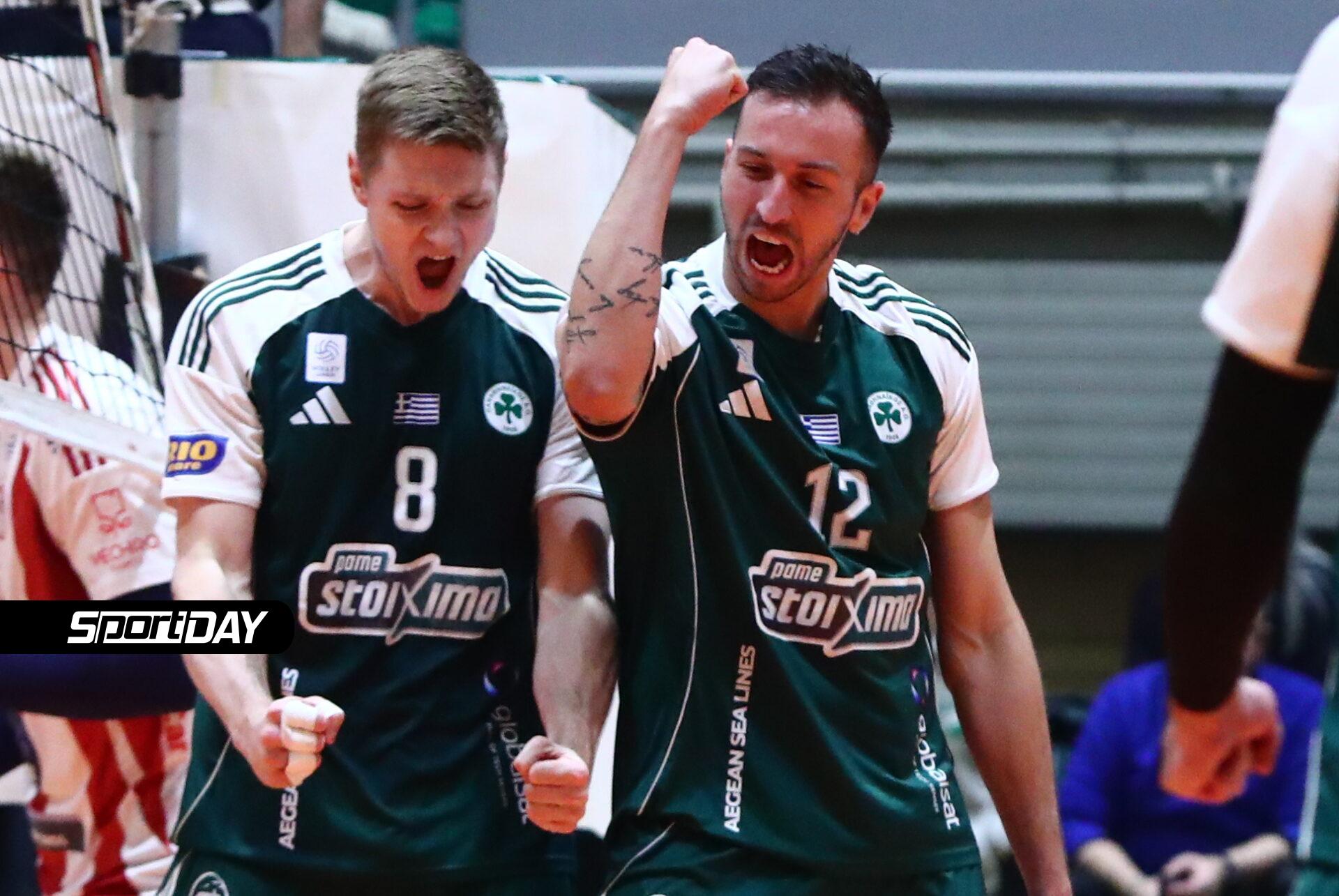 Αυτή τη φορά, ο Παναθηναϊκός δε το άφησε στη μέση! Το «τριφύλλι» έκανε… περίπατο στο ντέρμπι της Volley League Ανδρών με τον Ολυμπιακό και συνεχίζει το κυνήγι του Μίλωνα, ενώ οι Πειραιώτες έχασαν έδαφος και είναι πλέον 4οι, στο -7 από τη δεύτερη θέση και στο -8 από την κορυφή, με την ομάδα της Νέας Σμύρνης να έχει παιχνίδι λιγότερο.