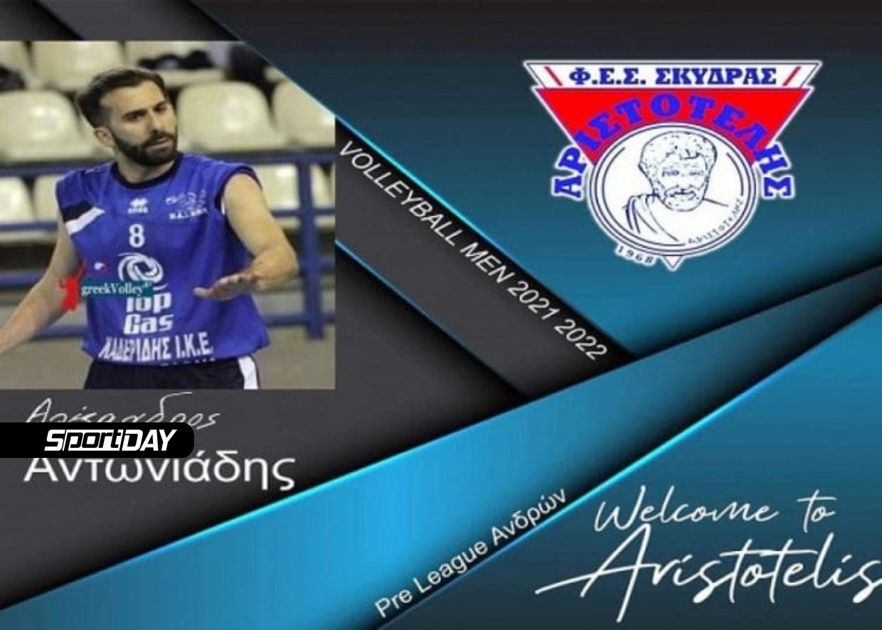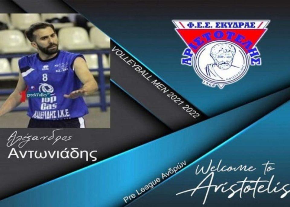Σημαντική προσθήκη για την ομάδα βόλεϊ του Αριστοτέλη Σκύδρας, που αγωνίζεται στην Pre League. Ανακοίνωσε την απόκτηση του πολύπειρου 35χρονου λίμπερο Αλέξανδρου Αντωνιάδη, ο οποίος τα τελευταία χρόνια αγωνίστηκε στη Volley League σε Άρη και ΠΑΟΚ.