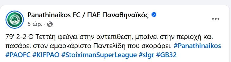 «Ο διαχειριστής τούτου του γκρουπ ζει; Να ενημερώσω ότι έχουμε φάει και τρίτο και έχει λήξει το ματς», ήταν ένα από τα πολλά σχόλια των φιλάθλων του Παναθηναϊκού κάτω από την τελευταία ανάρτηση.
