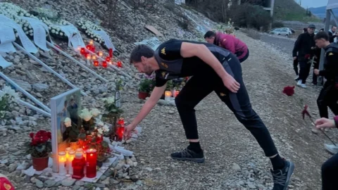 ΠοδόσφαιροΆρης Άρης: Η αποστολή σταμάτησε στα Τέμπη και κατέθεσε 57 τριαντάφυλλα στο μνημείο των θυμάτων της σιδηροδρομικής τραγωδίας