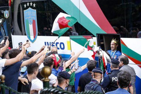 ΠοδόσφαιροΕθνική Ιταλίας EURO 2020: Η αποστολή της «Σκουάντρα Ατζούρα» αποθεώνεται από τους Ιταλούς στη Ρώμη