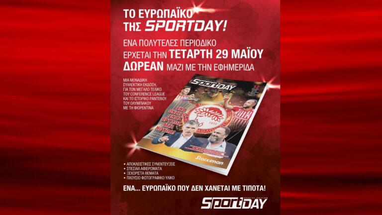 ΠοδόσφαιροUEFA Conference League ΔΩΡΕΑΝ με τη SportDay: Μη χάσετε ΣΗΜΕΡΑ Τετάρτη 29 Μαΐου το συλλεκτικό περιοδικό για τον μεγάλο τελικό του Ολυμπιακού