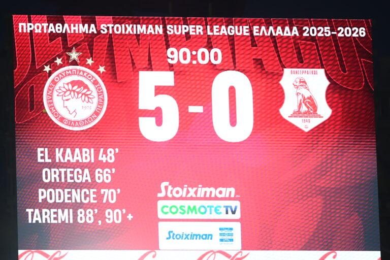 ΠοδόσφαιροSuper League Ολυμπιακός-Πανσερραϊκός 5-0: Ο απίθανος Ταρέμι συστήθηκε με ντοπιέτα και ο Ποντένσε έκανε τον μάγο στο ξέφρενο πάρτι των «ερυθρόλευκων»!
