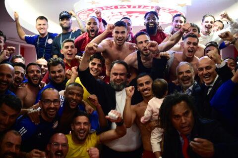 ΠοδόσφαιροΟλυμπιακός Ολυμπιακός: Οι έξαλλοι πανηγυρισμοί του Βαγγέλη Μαρινάκη για την ιστορική επιτυχία!
