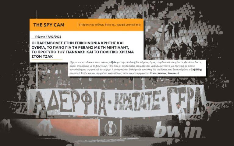 ΠοδόσφαιροΠΑΟΚ Το πανό της ντροπής: H Spy Cam το γνώριζε από τις 16/2, ΠΑΕ ΠΑΟΚ και Αστυνομία το έμαθαν την Πέμπτη;