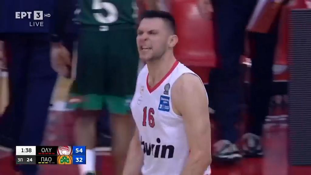 Ολυμπιακός – Παναθηναϊκός: Το φοβερό κάρφωμα του Παπανικολάου και ο πανηγυρισμοί του με κραυγές!