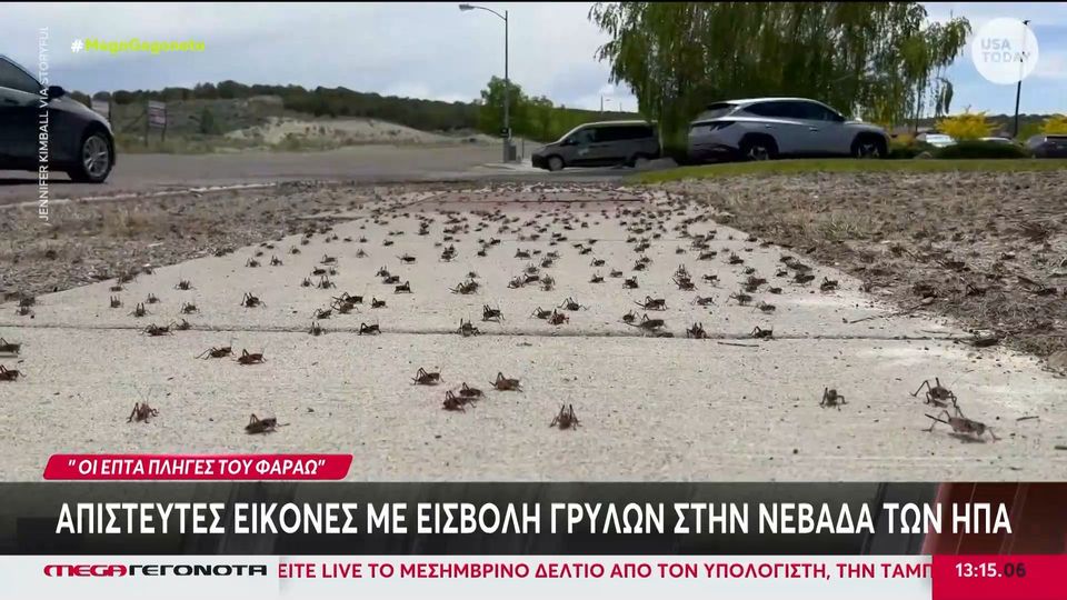 Πρωτοφανής η «εισβολή» γρύλων στη Νεβάδα των ΗΠΑ. Απεγνωσμένοι κάτοικοι προσπαθούν να αντιμετωπίσουν το σμήνος των εντόμων ενώ δεν μπορούν να βγουν από το σπίτι τους.