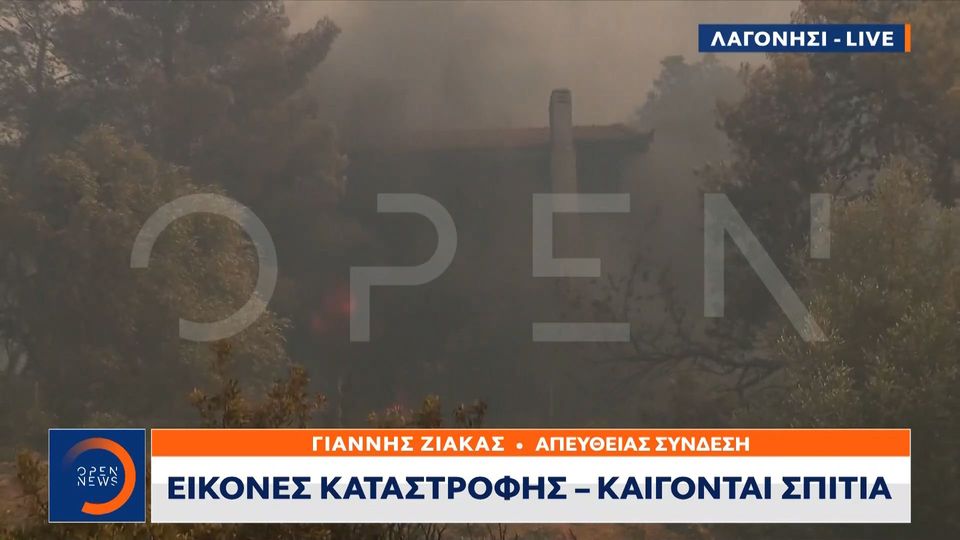 Στις φλόγες έχουν τυλιχθεί σπίτια στο Λαγονήσι, όπου έφτασε το πύρινο μέτωπο από τον Κουβαρά. Οι κάτοικοι προσπαθούν να σώσουν ό,τι μπορούν.