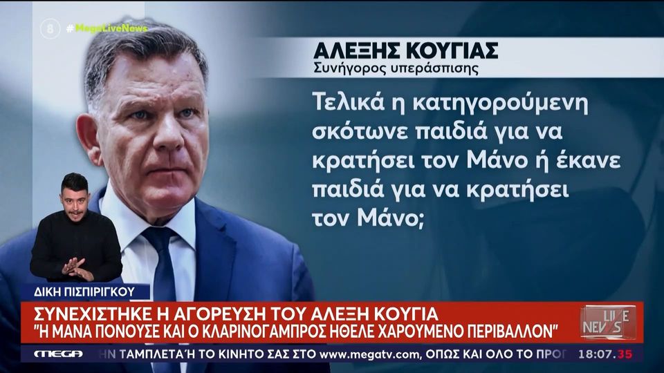 Δίκη Πισπιρίγκου: Συνεχίστηκε η αγόρευση Κούγια – «Η μάνα πονούσε και ο κλαρινογαμπρός ήθελε χαρούμενο περιβάλλον»