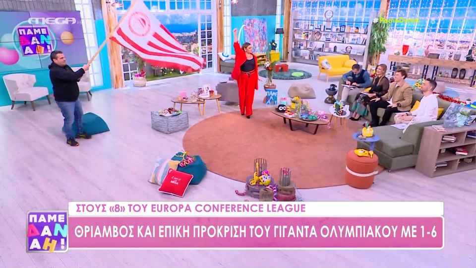 Αποθέωση: Η σημαία το Ολυμπιακού εισέβαλε στο πλατό!