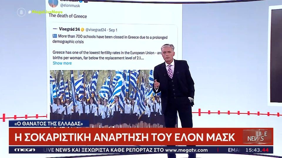 VideosΕκτός Γηπέδων «Ο θάνατος της Ελλάδας»: Η σοκαριστική ανάρτηση του Έλον Μασκ 3/09/2025 | 16:12 ΚΟΙΝΟΠΟΙΗΣΗ: ΔΙΑΒΑΣΤΕ ΑΚΟΜΑ ΣΕΦ: Η επιστολή των εργαζομένων για τα μεγάλα προβλήματα Ολυμπιακός: Με Τσικίνιο και Ποντένσε κόντρα στον ΟΦΗ Παναθηναϊκός: «Καμία προσέγγιση η ενδιαφέρον για τις μετοχές της ΠΑΕ» Μουντιάλ 2026: Αυτοί είναι οι όμιλοι της διοργάνωσης Παναθηναϊκός Παρασκήνιο: Πωλητήριο σε Ντραγκόφσκι Σχετικά Video Η πρόγνωση του καιρού για το Σάββατο - Σε ποιες περιοχές θα «χτυπήσει» η κακοκαιρία Εκτός Γηπέδων - 05/12/2025 Σάλος με τους «τιμωρούς παιδόφιλων» πίσω από άγριους ξυλοδαρμούς – Αποκαλύψεις για τρεις επιθέσεις Εκτός Γηπέδων - 05/12/2025 Καιρός: «Πνίγηκε» η δυτική Αττική από την κακοκαιρία «Byron» – Χείμαρροι οι δρόμοι, πλημμύρισαν σπίτια Εκτός Γηπέδων - 05/12/2025 Αναταράξεις στον ΣΥΡΙΖΑ από το επερχόμενο κόμμα Τσίπρα Εκτός Γηπέδων - 05/12/2025 Στο συνέδριο του «Βήματος» ο Κυριάκος Μητσοτάκης – Η συζήτηση με τον Γιάννη Πρετεντέρη Εκτός Γηπέδων - 05/12/2025 ΠΑΟΚ - Ολυμπιακός 1-3 σετ: Τα highlights της «ερυθρόλευκης» νίκης Match Highlights - 05/12/2025 ΠΑΟΚ - Ολυμπιακός: Η «θρυλική» ανατροπή στο τέταρτο σετ για την κατάκτηση του League Cup Action Videos - 05/12/2025 ΠΑΟΚ - Ολυμπιακός: Επική ατάκα από τον πάγκο του ΠΑΟΚ μετά το black out - «Όχι τώρα που βρήκαμε ρυθμό!» Backstage Videos - 05/12/2025 ΠΑΟΚ - Ολυμπιακός: Έπεσε το ρεύμα στο ''Ανδρέας Βαρίκας'' - Διακοπή στον τελικό του League Cup Backstage Videos - 05/12/2025 ΝΒΑ: Το Top-10 της βραδιάς με την τάπα της χρονιάς από τον Κορνέτ Match Highlights - 04/12/2025