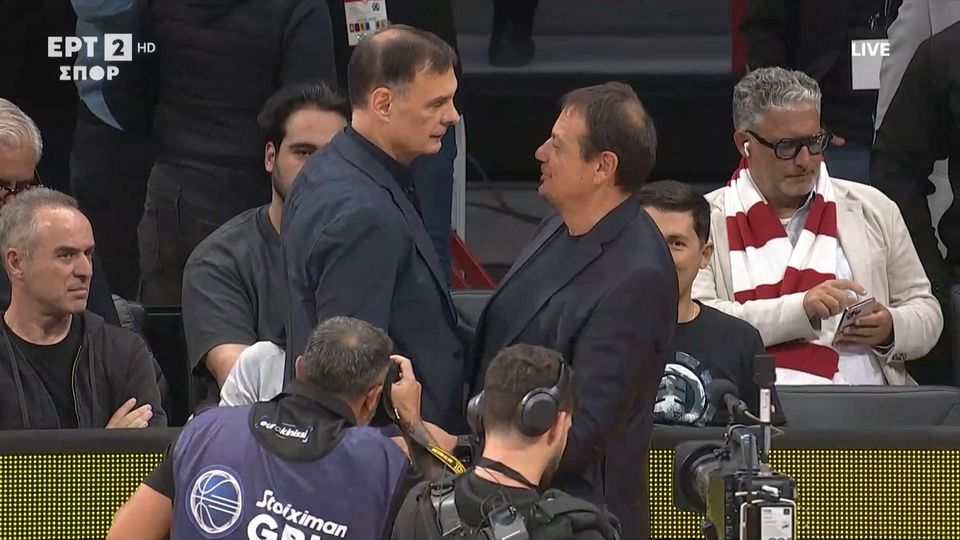 Ολυμπιακός – Παναθηναϊκός: Θερμή χειραψία, χαμόγελα και συζήτηση ανάμεσα σε Μπαρτζώκα και Αταμάν
