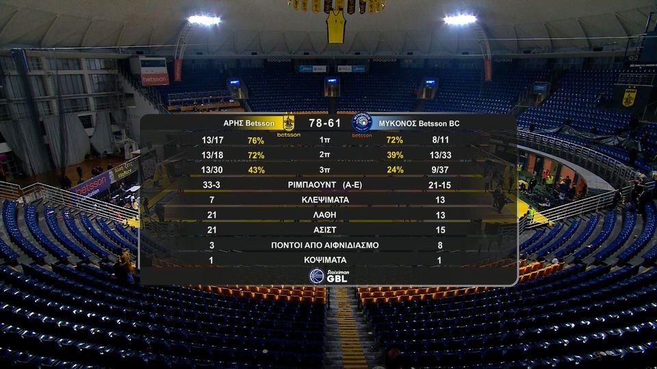 Άρης – Μύκονος 78-61: Τα highlights της εύκολης νίκης των «κίτρινων»