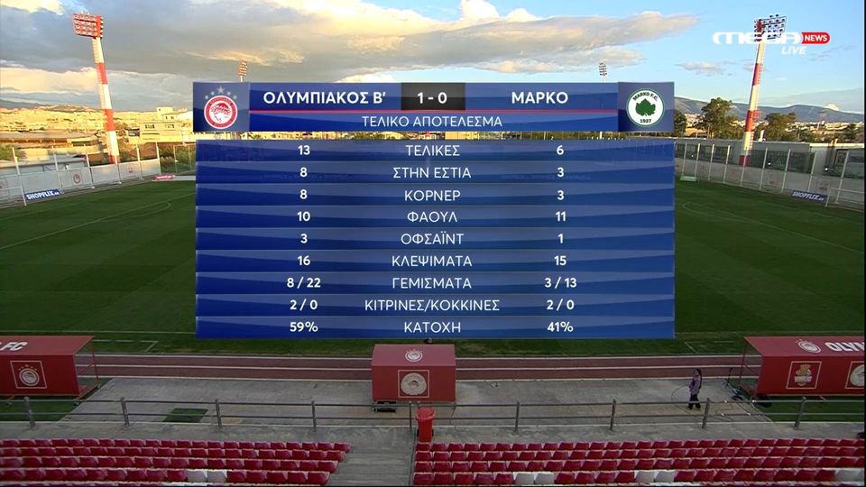 VideosMatch HighlightsΟλυμπιακός Β΄ Ολυμπιακός Β’ – Μαρκό 1-0: Τα highlights 11/01/2026 | 18:08 ΚΟΙΝΟΠΟΙΗΣΗ: ΔΙΑΒΑΣΤΕ ΑΚΟΜΑ Αρης: «Λανουά έχουμε κουραστεί, πια» Ολυμπιακός: Ο παίκτης - σύμβολο και μια λογική διαχείριση ΠΑΟΚ: Γιάννης Κωνσταντέλιας, ένα παιδί που χαίρεσαι να το βλέπεις... Καλαμάτα: Ασταμάτητη η «Μαύρη Θύελλα», 2-0 τον Πανιώνιο! Ρέτσος: Ο αρχηγός του Ολυμπιακού έφτασε τα 150 παιχνίδια! Σχετικά Video Ηλίας Παπαθεοδώρου: «Είναι σαν να κάνουμε ένα καινούργιο ξεκίνημα» Backstage Videos - 11/01/2026 Μαρούσι - Προμηθέας 96-78: Τα highlights του αγώνα Match Highlights - 11/01/2026 Τσεντί Οσμάν: «Αυτή πρέπει να είναι η ταυτότητά μας» Backstage Videos - 11/01/2026 Παναθηναϊκός - Περιστέρι 94-86: Τα highlights Match Highlights - 11/01/2026 Όμορφη κίνηση από τον Καλαΐτζάκη: Έκανε επίτηδες φάουλ στον 18χρονο Τζιάλλα για να βαρέσει βολές Action Videos - 11/01/2026 Ολυμπιακός Β' - Μαρκό: Μεντιλίμπαρ και Κοβάσεβιτς παρακολουθούν την αναμέτρηση Backstage Videos - 11/01/2026 Α. Βοσνιάδης: «Πιστεύουμε όλοι πως φέτος είναι η χρονιά μας» Backstage Videos - 11/01/2026 Καλαμάτα-Πανιώνιος 2-0: Τα highlights της μεγάλης νίκης της «Μαύρης Θύελλας» Match Highlights - 11/01/2026 Καλαμάτα - Πανιώνιος 2-0: "Αριστουργηματικό" πλασέ από τον Τσέλιο, κλείδωσε τη νίκη των γηπεδούχων Action Videos - 11/01/2026 Μ. Καρυστιανού: Πολιτικές «αναταράξεις» για το κόμμα που προανήγγειλε - Οι αντιδράσεις και τα καυστικά σχόλια από κυβέρνηση και αντιπολίτευση Εκτός Γηπέδων - 11/01/2026